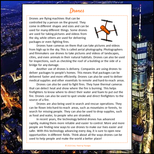 Drones Reading Comprehension Passage and Questions | Printable PDF