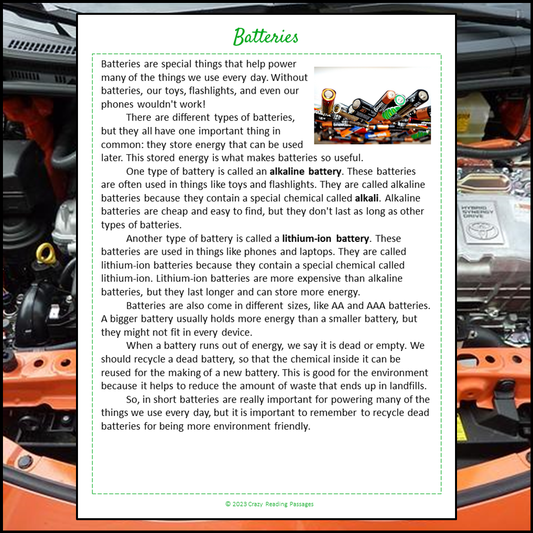Batteries Reading Comprehension Passage and Questions | Printable PDF