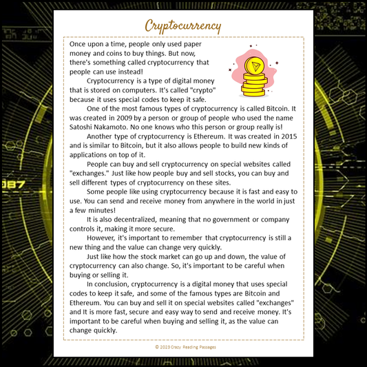 Cryptocurrency Reading Comprehension Passage and Questions | Printable PDF