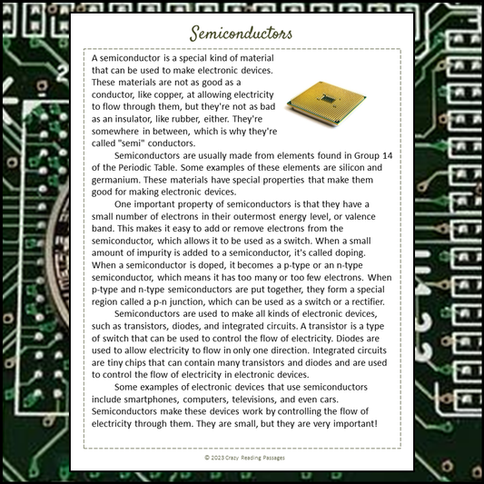 Semiconductors Reading Comprehension Passage and Questions | Printable PDF