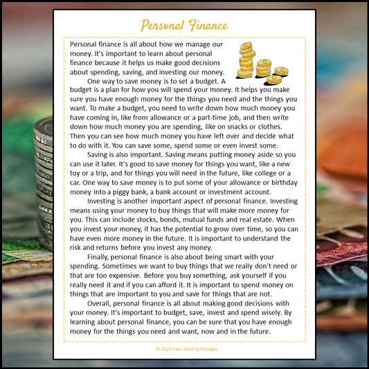 Personal Finance Reading Comprehension Passage and Questions | Printable PDF