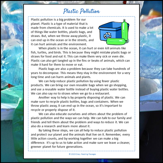 Plastic Pollution Reading Comprehension Passage and Questions | Printable PDF
