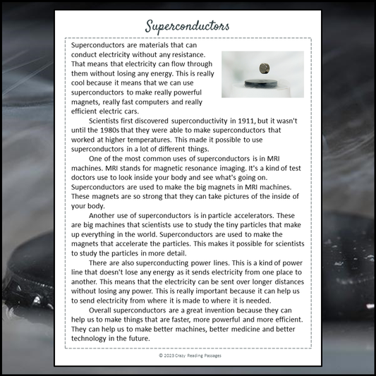 Superconductors Reading Comprehension Passage and Questions | Printable PDF