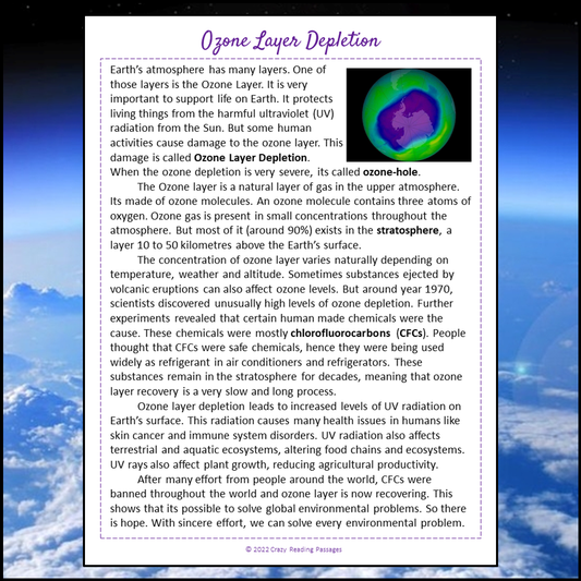 Ozone Layer Depletion Reading Comprehension Passage and Questions | Printable PDF