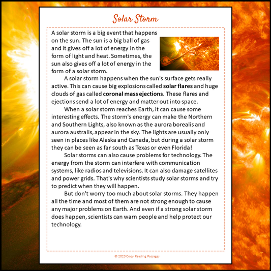 Solar Storm Reading Comprehension Passage and Questions | Printable PDF