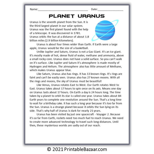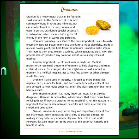 Uranium Reading Comprehension Passage and Questions | Printable PDF
