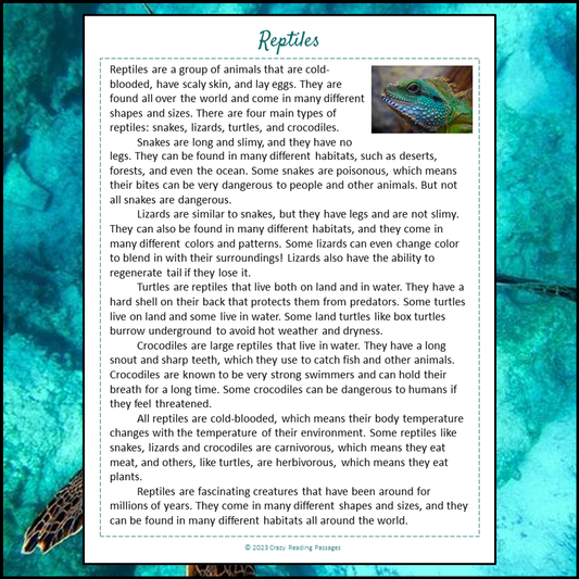 Reptiles Reading Comprehension Passage and Questions | Printable PDF