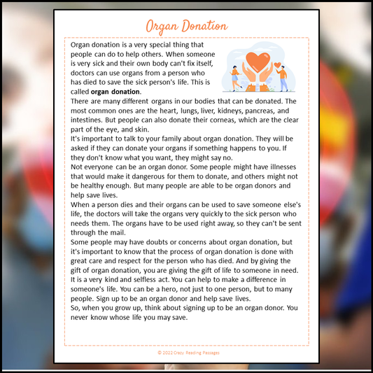 Organ Donation Reading Comprehension Passage and Questions | Printable PDF