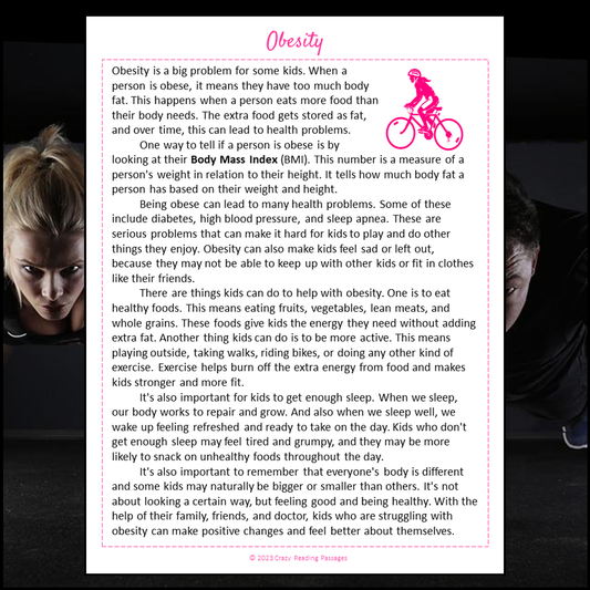 Obesity Reading Comprehension Passage and Questions | Printable PDF