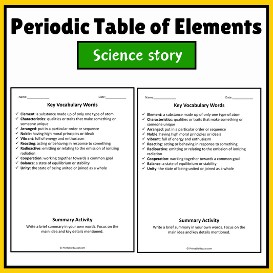 Periodic Table of Elements | Science Story Reading Comprehension Activity