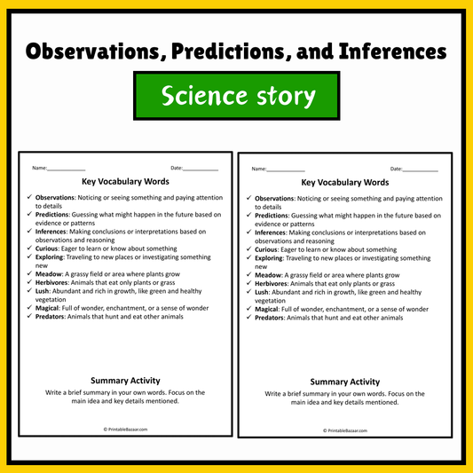 Observations, Predictions, and Inferences | Science Story Reading Comprehension Activity