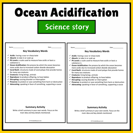 Ocean Acidification | Science Story Reading Comprehension Activity