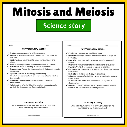 Mitosis and Meiosis | Science Story Reading Comprehension Activity