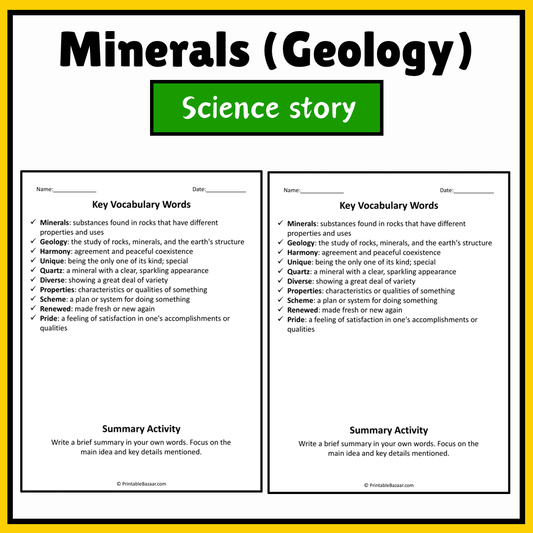 Minerals (Geology) | Science Story Reading Comprehension Activity