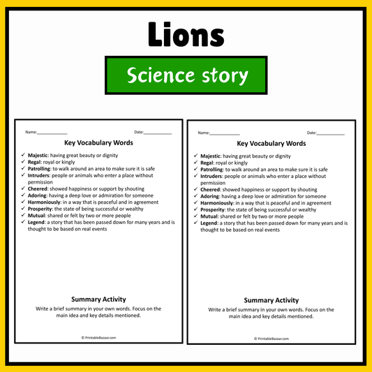Lions | Science Story Reading Comprehension Activity