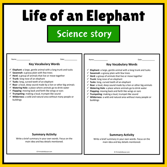 Life of an Elephant | Science Story Reading Comprehension Activity