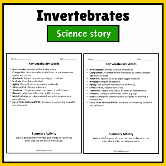Invertebrates | Science Story Reading Comprehension Activity