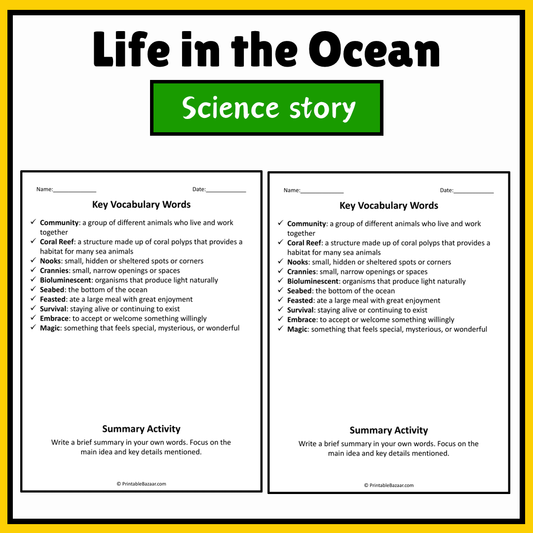 Life in the Ocean | Science Story Reading Comprehension Activity