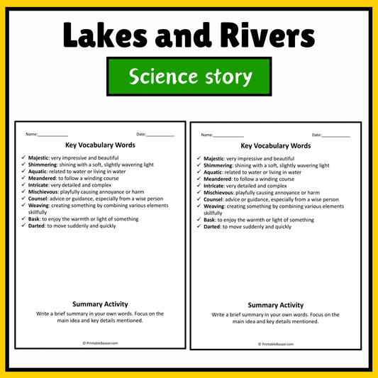 Lakes and Rivers | Science Story Reading Comprehension Activity