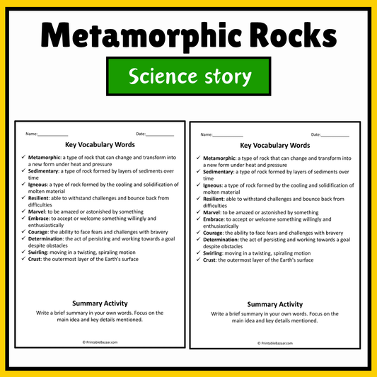 Metamorphic Rocks | Science Story Reading Comprehension Activity