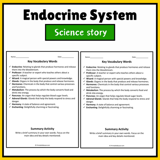Endocrine System | Science Story Reading Comprehension Activity