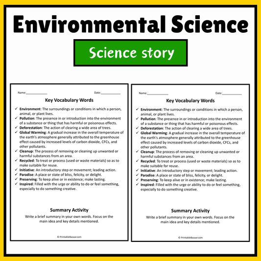 Environmental Science | Science Story Reading Comprehension Activity