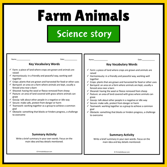 Farm Animals | Science Story Reading Comprehension Activity