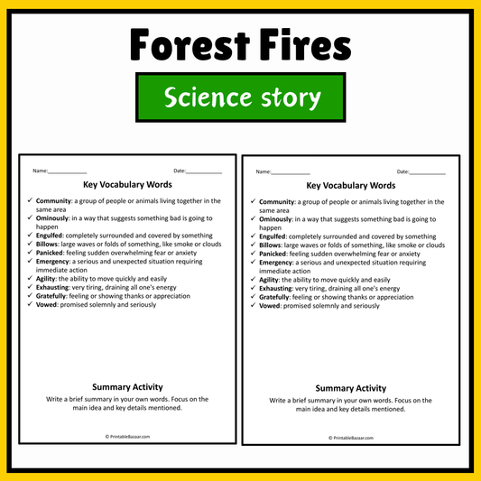 Forest Fires | Science Story Reading Comprehension Activity
