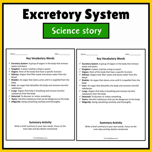 Excretory System | Science Story Reading Comprehension Activity