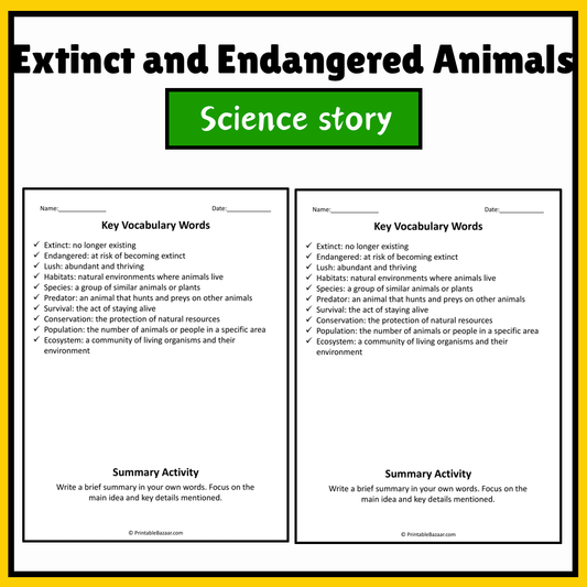 Extinct and Endangered Animals | Science Story Reading Comprehension Activity