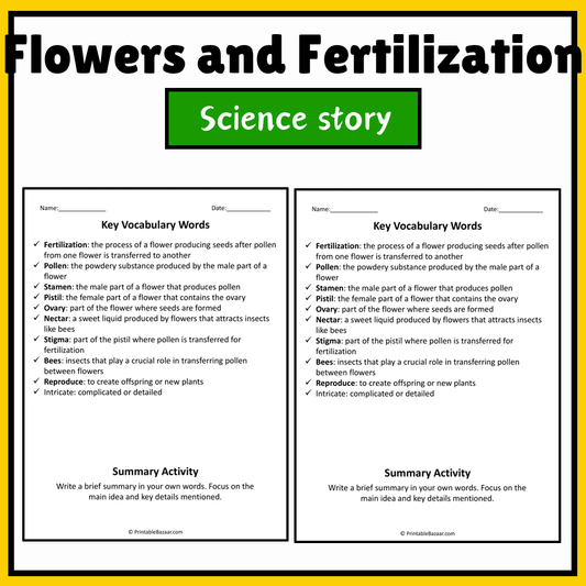 Flowers and Fertilization | Science Story Reading Comprehension Activity