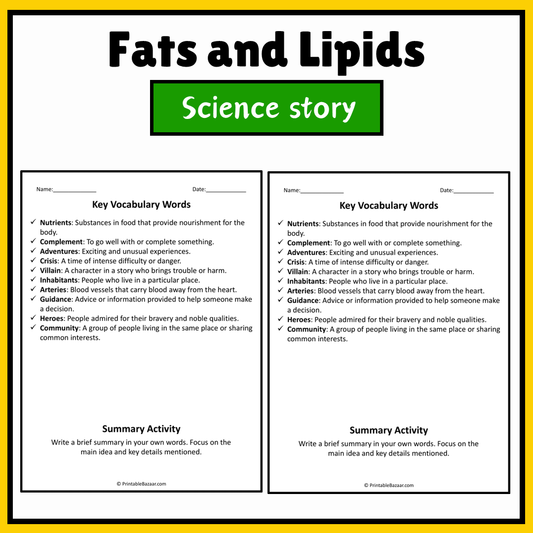 Fats and Lipids | Science Story Reading Comprehension Activity