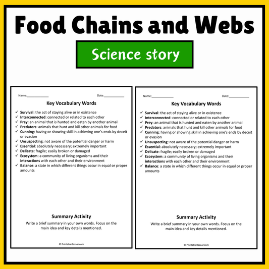 Food Chains and Webs | Science Story Reading Comprehension Activity