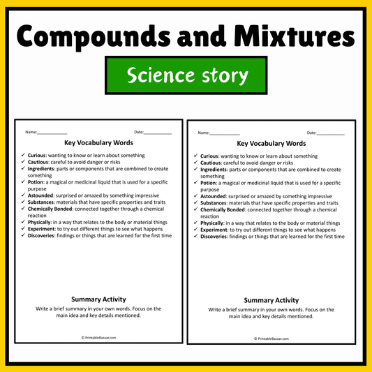Compounds and Mixtures | Science Story Reading Comprehension Activity