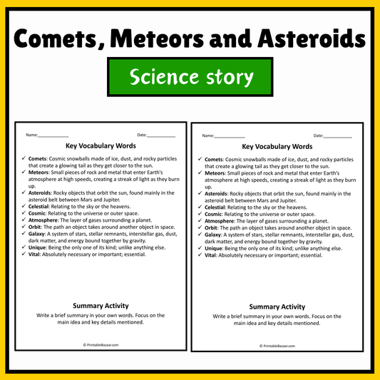 Comets, Meteors and Asteroids | Science Story Reading Comprehension Activity