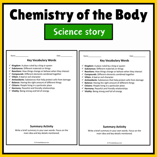Chemistry of the Body | Science Story Reading Comprehension Activity
