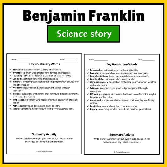 Benjamin Franklin | Science Story Reading Comprehension Activity
