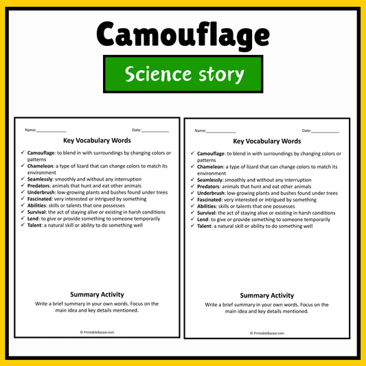 Camouflage | Science Story Reading Comprehension Activity