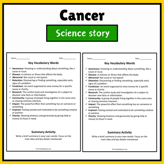 Cancer | Science Story Reading Comprehension Activity