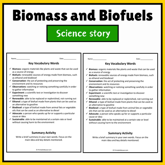 Biomass and Biofuels | Science Story Reading Comprehension Activity