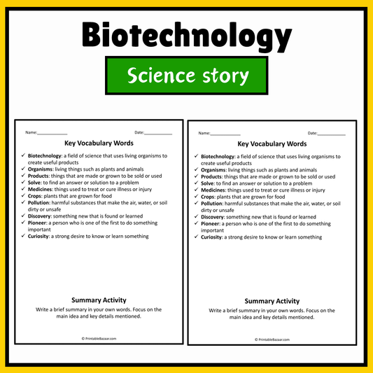 Biotechnology | Science Story Reading Comprehension Activity