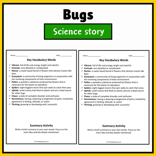 Bugs | Science Story Reading Comprehension Activity