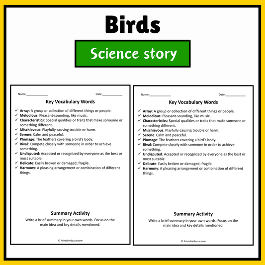 Birds | Science Story Reading Comprehension Activity