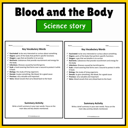 Blood and the Body | Science Story Reading Comprehension Activity
