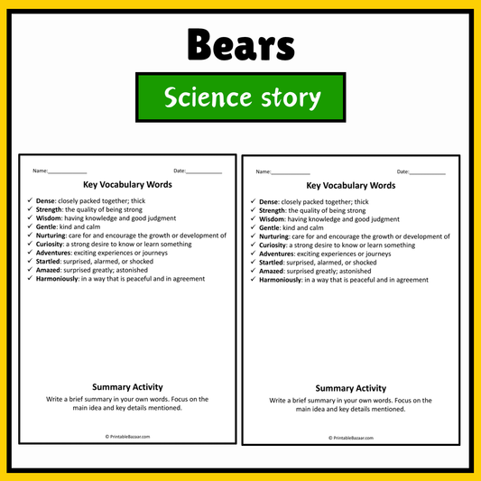 Bears | Science Story Reading Comprehension Activity