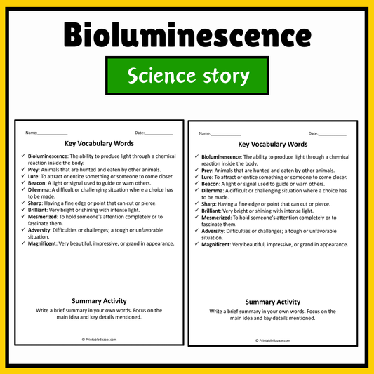 Bioluminescence | Science Story Reading Comprehension Activity