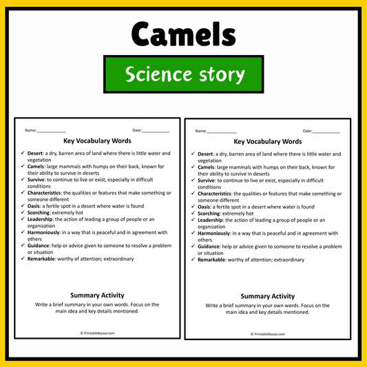 Camels | Science Story Reading Comprehension Activity