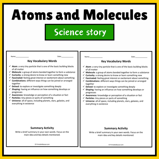 Atoms and Molecules | Science Story Reading Comprehension Activity