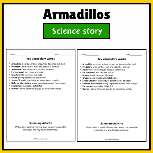 Armadillos | Science Story Reading Comprehension Activity