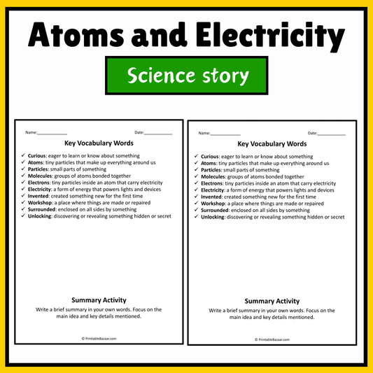 Atoms and Electricity | Science Story Reading Comprehension Activity